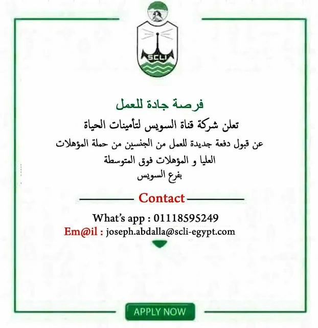 أحدث الأخبار من wazaef4u.net | احدث اخبار الوظائف الرئيسية وظائف فى المحافظات وظائف خالية بشركة مصر لتامينات الحياة للمهلات العليا وفوق المتوسطة منشور فى 20/2/2018 2/20/2018 وظائف خالية بشركة مصر لتامينات الحياة منشور فى 20/2/2018 تعلن شركة مصر لتامينات الحياة عن قبول دفعة جديدة للعمل من الجنسين من حملة المؤهلات العليا والمؤهلات فوق المتوسطة بفرع السويس الاتصال على 01118595249 joseph.abdalla@scli-egypt.com الأقسام وظائف فى المحافظات تويتر واتساب بنترست لينكدين تمبلر لاين بريد أنسخ الرابط أخر المواضيع من قسم : وظائف فى المحافظات