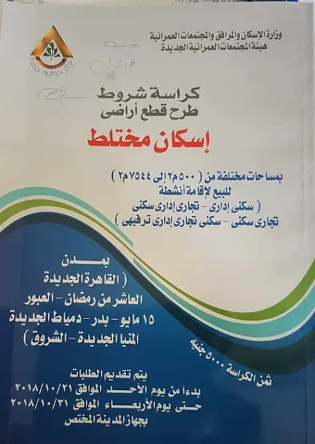 اعلان وزارة الإسكان والمرافق والمجتمعات العمرانية عن طرح قطع أراضى ب