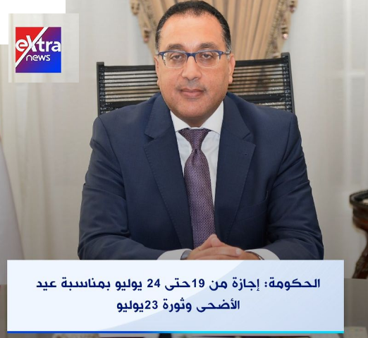 أصدر الدكتور مصطفى مدبولي، رئيس مجلس الوزراء، قرارا بأن تكون الفترة من يوم الاثنين الموافق 19 يوليو الجاري حتى يوم السبت الموافق 24 يوليو الجاري، إجازة رسمية مدفوعة الأجر في الوزارات والمصالح الحكومية والهيئات العامة ووحدات الإدارة المحلية وشركات القطاع العام وشركات قطاع الأعمال العام، مع استمرار أعمال الامتحانات وفقا للمواعيد المقررة من قبل السلطة المختصة، وذلك بمناسبة عيد الأضحى المبارك وعيد ثورة 23 يوليو.