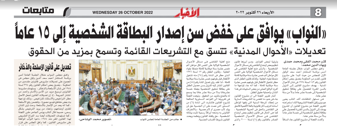 الجريدة الرسمية : خفض سن إصدار البطاقة الشخصية إلي 15 عام وغرامة في حاله التأخر بعدم استخراجها